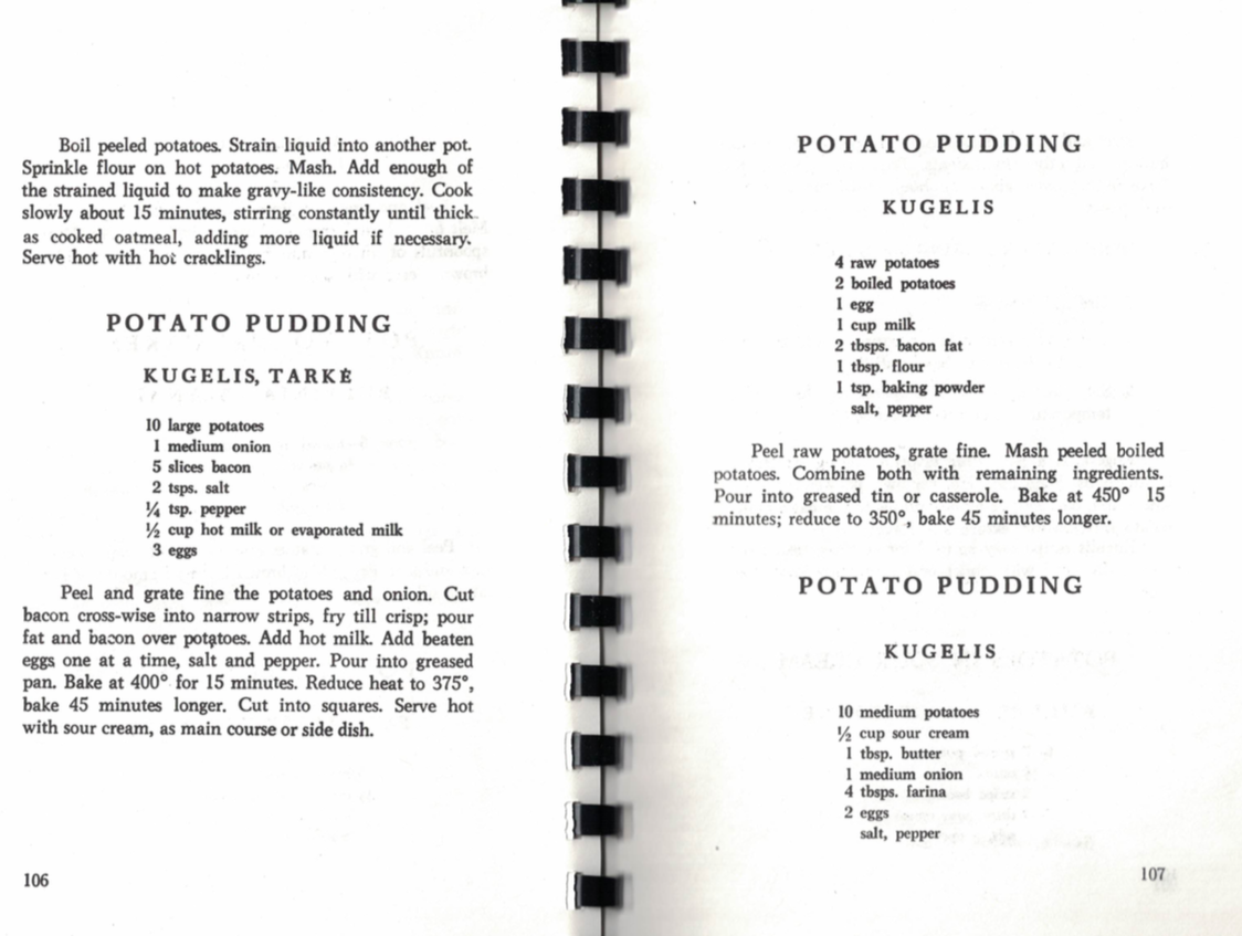 Christine explains, “I didn’t translate it because there is virtually no difference in the base preparation for any kugelis recipe. The second recipe is from the cookbook given to me and my husband by a family friend when we got married. It was originally printed in 1955 by Lithuanians living in the US, and it hasn’t changed since then.