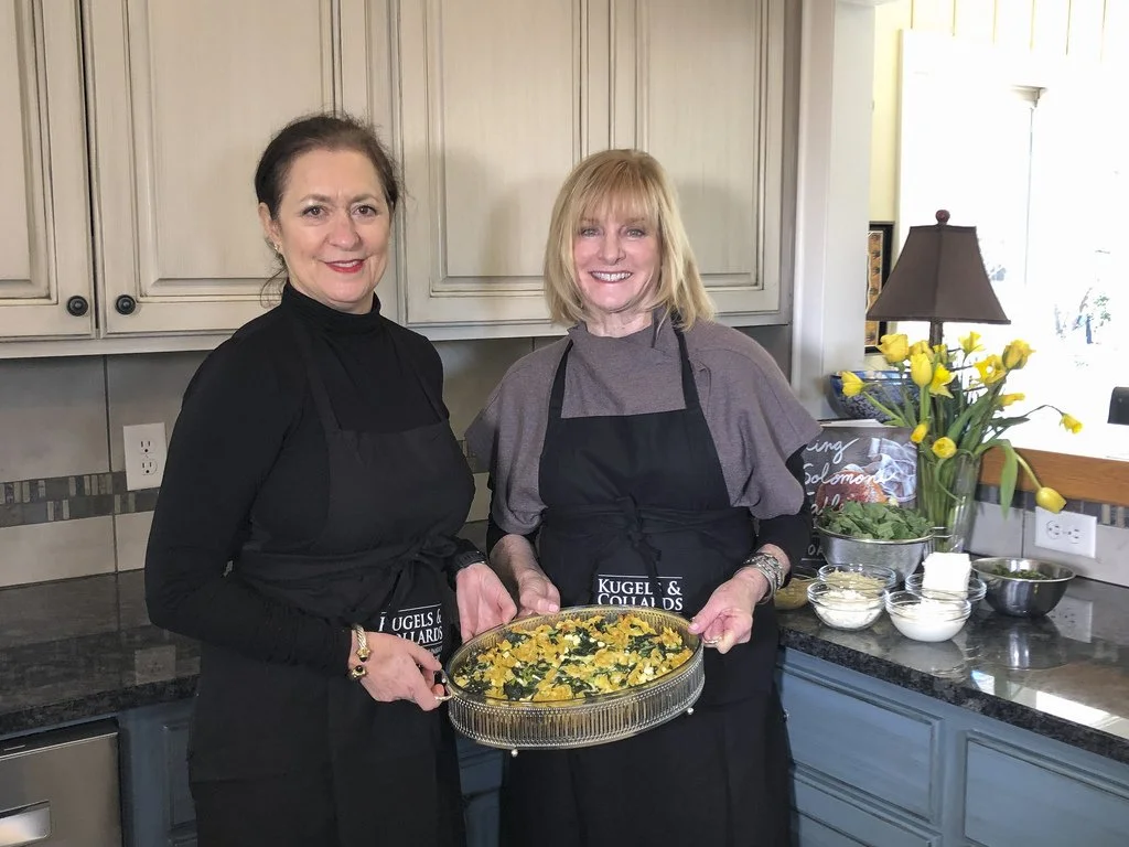 Rachel Barnett and Lyssa Harvey with the savory Collard Kugel